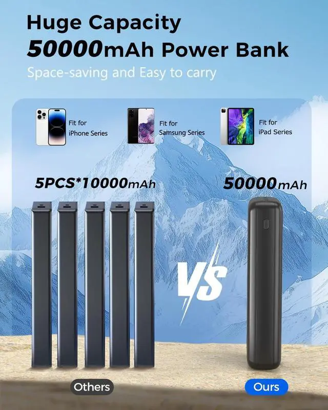 | Special Feature | Built In 3 Cables (USB-C, iOS, USB-A), Digital Display, Portable Travel Charger, Support PD 22.5W Fast Charging&20W Recharging, 50000mAh Huge Power to Go, 5 Output 2 Input, Auto Shut-Off, Over Charging Protection, LED Indicator Light. |
