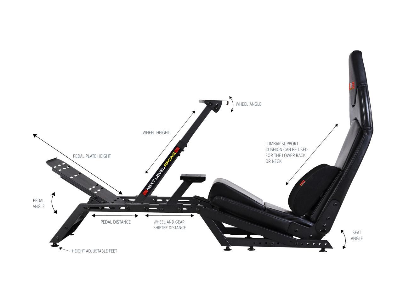 - Completely adjustable wheel, gear shifter and pedal positions