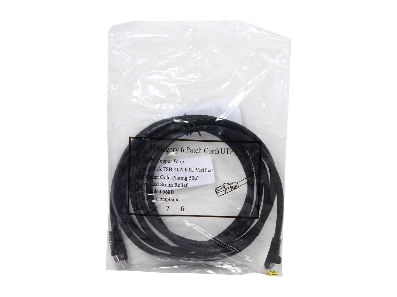 Nippon Labs CAT6MB-7BK 7 ft. CAT 6 UTP Injection Molded Boot Patch Ethernet Cable, Black - OEM