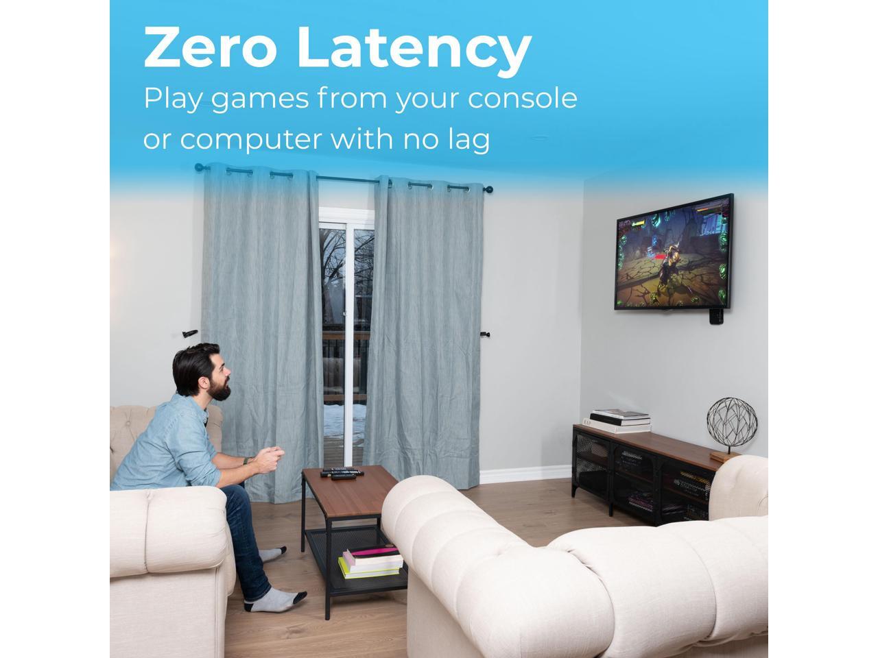 - Powerful long range signal transmits uncompressed high definition video and audio through walls, ceilings, and floors with zero latency