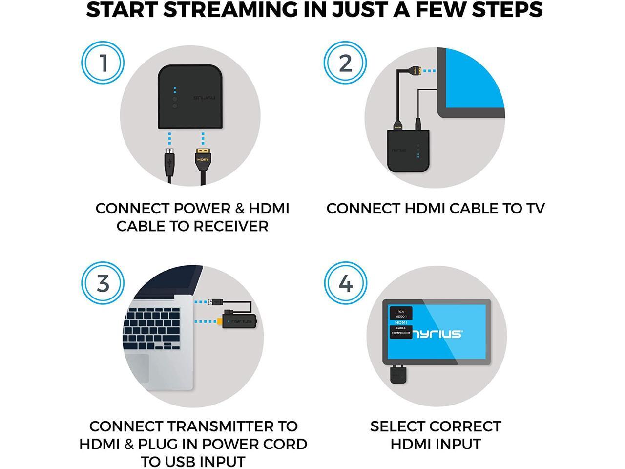 - Easy to install plug 'n play set up eliminates the need to install expensive, inconvenient cables. No software or WiFi connection required. Transmitter: 1 x HDMI input, Receiver: 1 x HDMI output