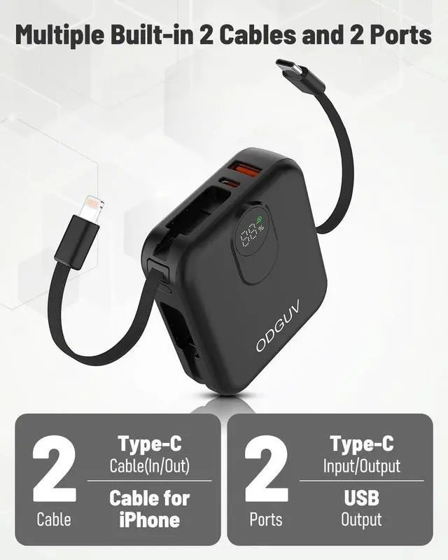 | Special Feature | Built In Cable, Fast Charging, LED Indicator Lights, Lightweight, Pocket Size |