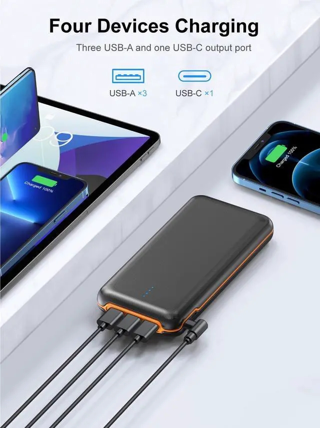 Portable Battery Charger Excellent Compatibility: Suit for iPhone Android cell phones, such as iPhone XS Max, iPhone 11, Samsung Galaxy Note10, Galaxy S20, Google pixel 4a, pixel 6. also for tablet mini 4, tablet air 2, radio, Bluetooth headphones, bike light, and more.