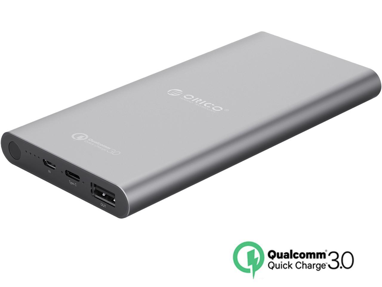 [Qualcomm Certified Quick Charge 3.0] ORICO TS1-BK 10000 mAh QC3.0 & USB-C / Type-C Port Portable Charger External Battery Pack Power Bank for Phones, Tablet and More