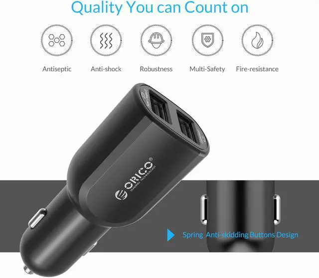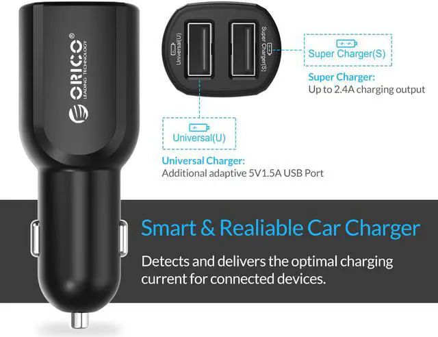 The ORICO Dual USB Car Charger is the first portable car charger because of its Smart Charging Technology, allowing it to operate at the optimal charging rate for whatever you plug into its dual ports. This means that tablets, smartphones and other mobile devices will recharge as quickly as possible without you having to worry about overcharging or short circuiting.