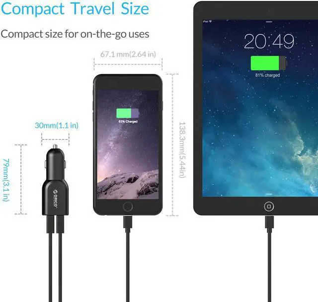 You rely on your tablet computer and your other mobile devices equally when you're on travel or business trip. So why not choose this item to charge devices when their batteries begin to run low? With the ORICO Dual USB Car Charger, you can simultaneously repower both a tablet computer and a smartphone, MP3 player, GPS unit, e-reader or any other standard USB device. You'll never have to go without one device and keep using another, so you can make more calls, send more texts, listen to more music, use more apps and surf the web more when you're traveling.