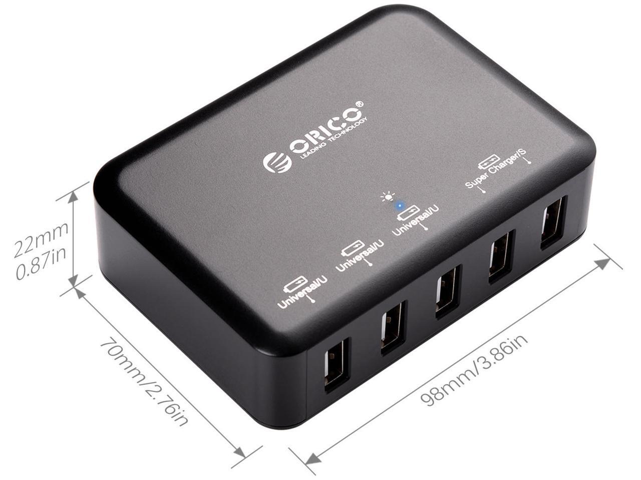 ORICO DCAP-5S 40W 5-Port High Speed Desktop USB Charger for iPhone 6s / 6 / 6 plus, iPad Air 2 / mini 3, Samsung Galaxy S6 Edge / Note 5, HTC M9, Nexus and More - Black