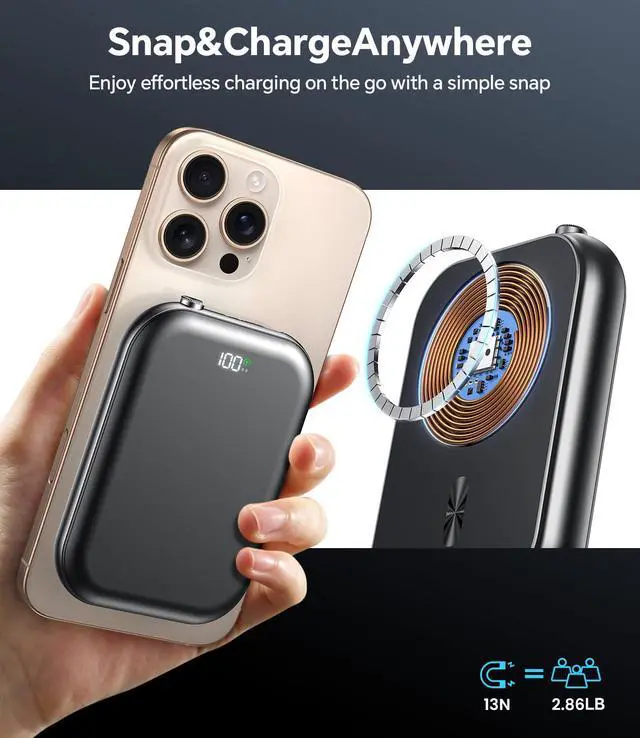 - [Strong Magnetic & Superior Safety]With a strong magnetic adsorption,ensuring precise alignment and preventing disconnection issues during wireless charging.Featuring pass-through charging capability,built-in low-temperature ice cores and multi-protection systems to safeguard your devices from overheating,overcharging,overcurrent and short circuits,enjoy a safe and efficient charging experience.