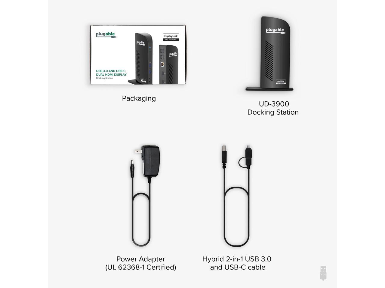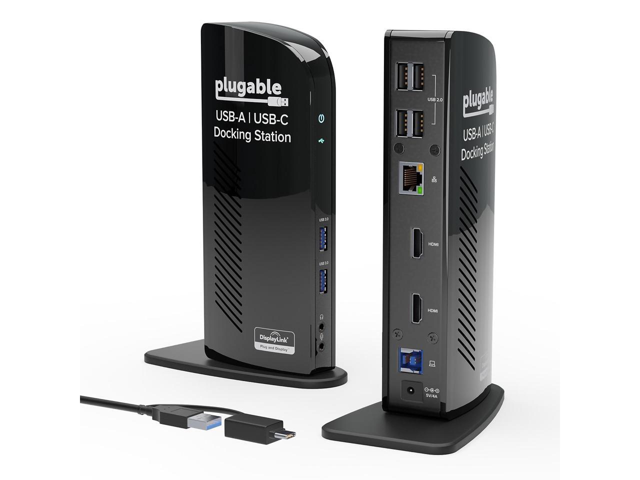 Plugable USB 3.0 Universal Laptop Docking Station Dual Monitor for Windows and Mac, USB 3.0 or USB-C, (Dual Video: HDMI and HDMI/DVI/VGA, Gigabit Ethernet, Audio, 6 USB Ports)
