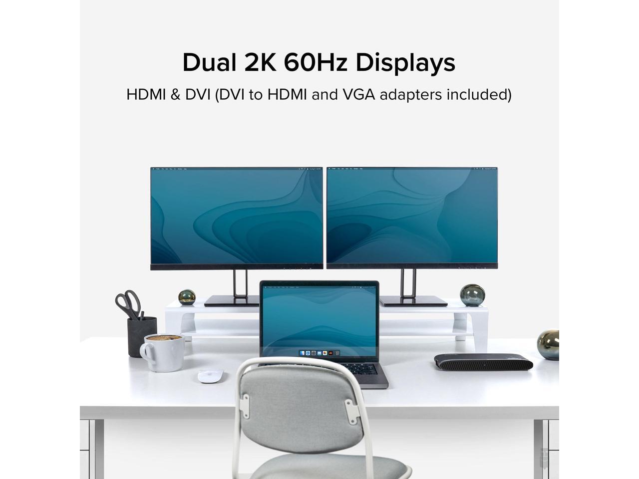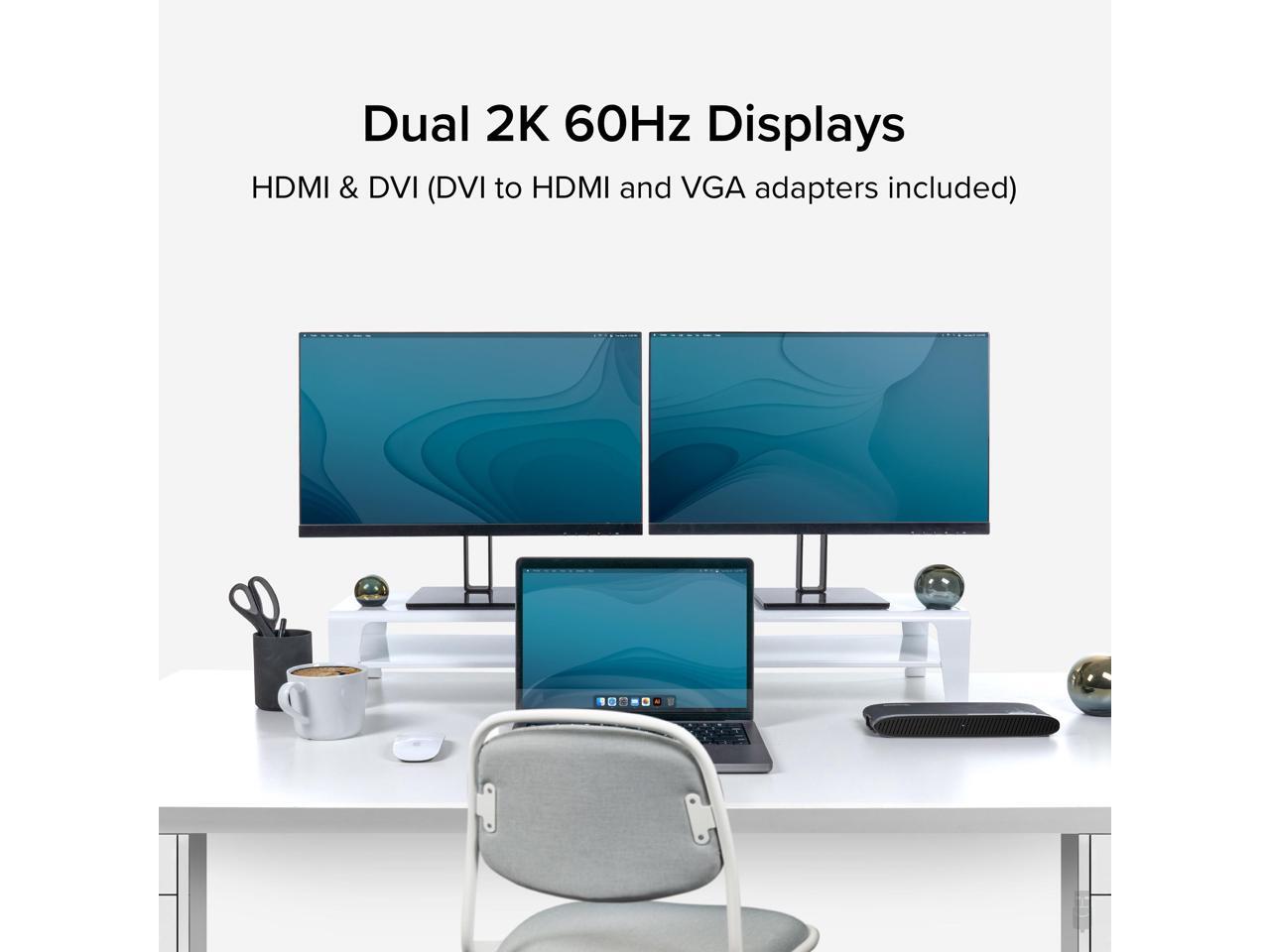 - DUAL HD MONITORS - Built-in HDMI and DVI outputs each supporting 1920x1200 resolution @ 60Hz refresh rate. Includes DVI to VGA adapter and DVI to HDMI adapter. HDMI port supports resolutions up to 2560x1440 @ 50Hz with a single HDMI display only