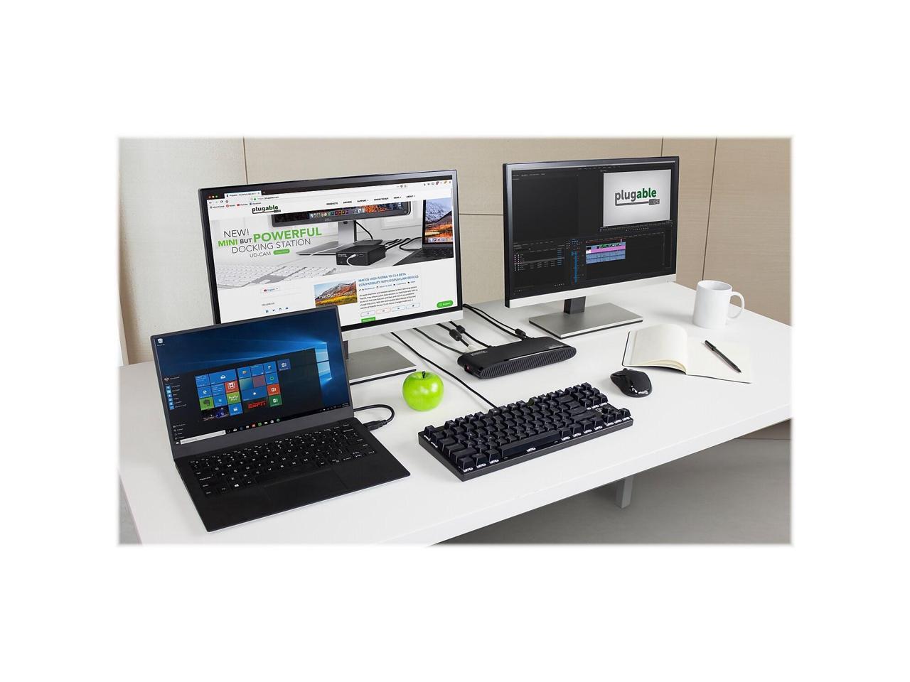 Plugable USB 3.0 Universal Laptop Docking Station for Windows and Mac (Dual Monitor: HDMI and DVI/HDMI/VGA, Gigabit Ethernet, Audio, 6 USB Ports) - Horizontal