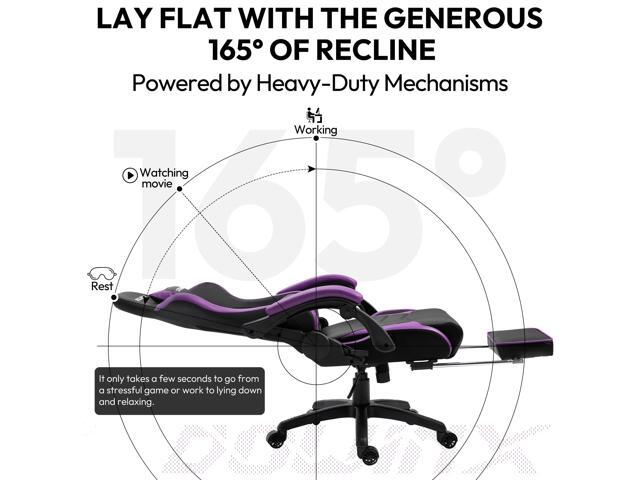 - FUNCTIONS ALL YOU NEED FOR A CHAIR: 360° swivel and smooth racing caster wheels for mobility; 90°-180° reclining for working, gaming, reading or napping; 20° controllable rocking and retractable footrest for relaxing; Adjustable seat height, 350 lbs capacity.