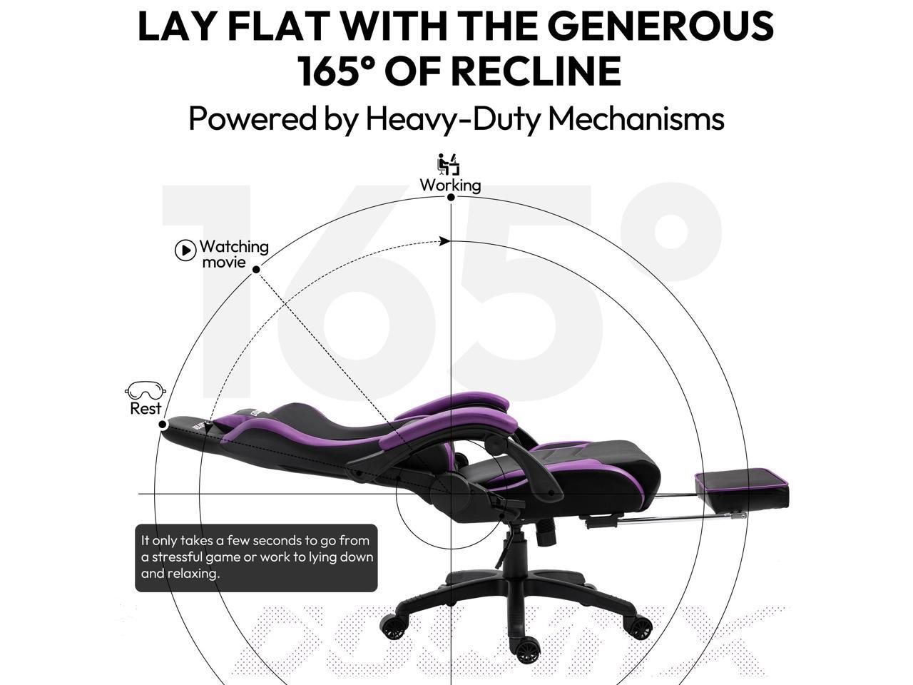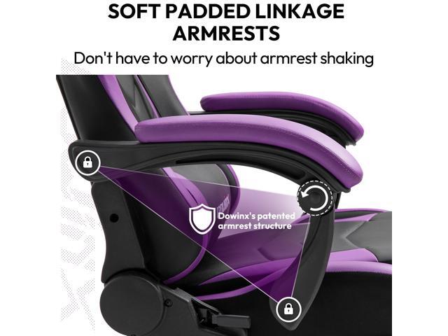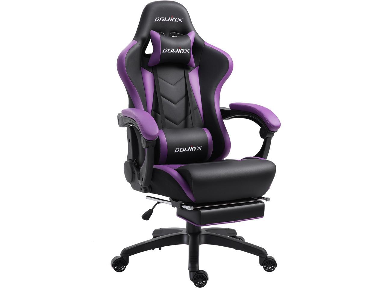 Dowinx Gaming Chair Ergonomic Racing Style Recliner with Massage Lumbar Support, Office Armchair for Computer PU Leather E-Sports Gamer Chairs with Retractable Footrest (Black&Purple)