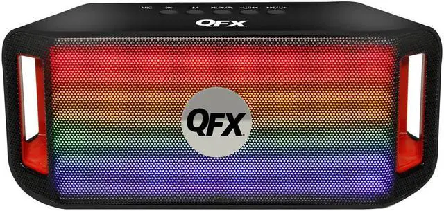 The Sound Burst by QFX packs big Bluetooth sound and hands-free calling into a portable dual driver speaker behind a dynamic grid of customizable LEDs that pulse to your beat.
