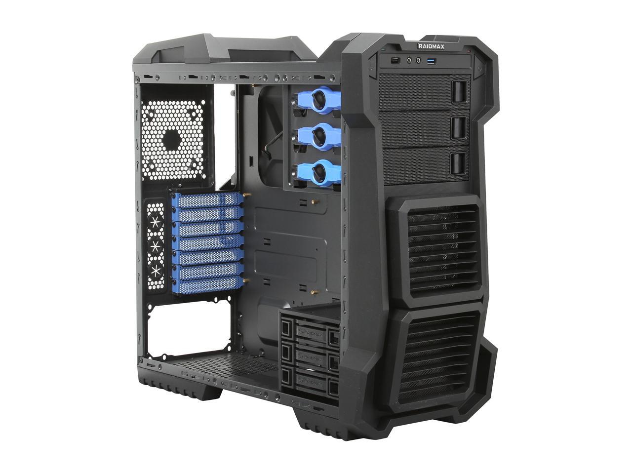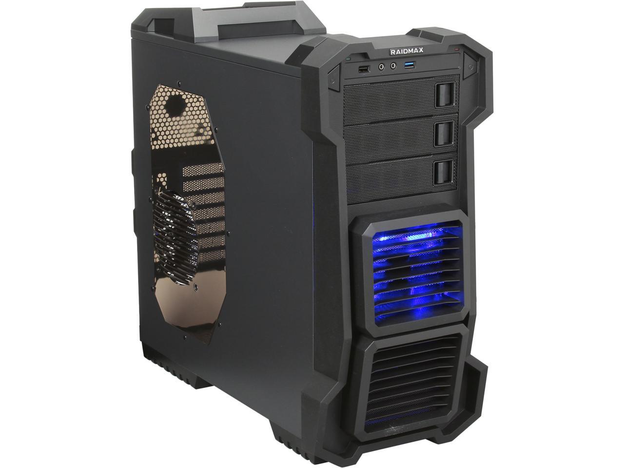 Pros: The design is very slick and professional yet bold with the air vents and curves. Airflow throughout the case is great and the raidmax fans run extremely quiet. Mat black finish inside and out with rounded edges inside the case is nice. Lots of spots inside to tuck wires as well as-well as room for a massive gfx or water cooling system and whatever else you might fit into a mid atx case. The sideview plexy glass is slightly smoked rather than totaly clear and gives a nice touch to the glowing fans inside. This case definitely looks much better in person than in picture.
