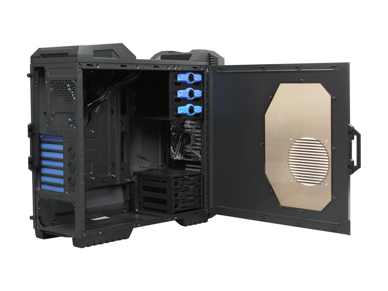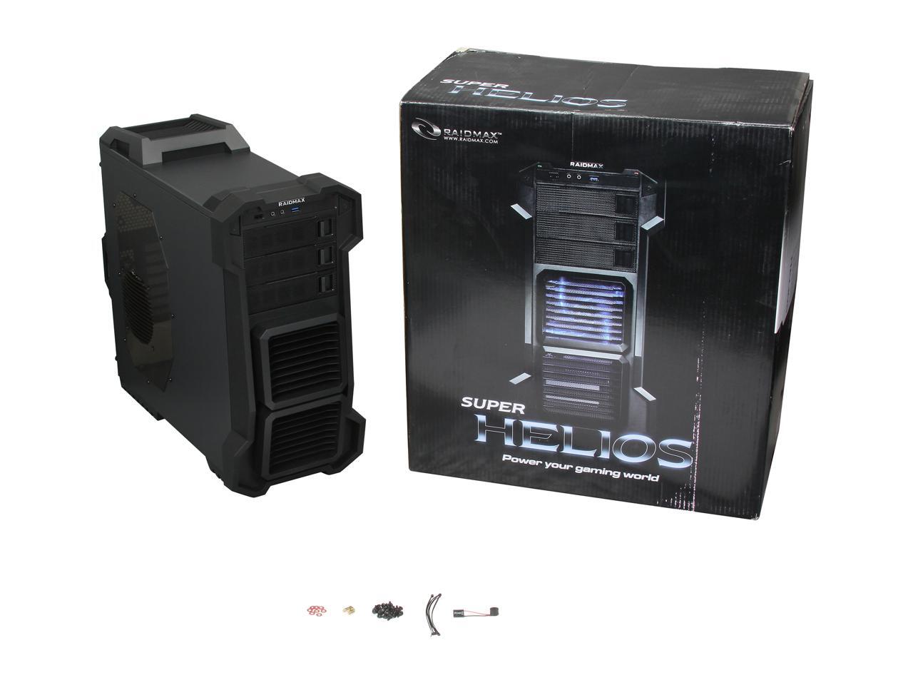 The Helios gaming case—with its black meshed front panel and front mounted LED fan design—displays a powerful appearance and functionality. The optional 120mm fan on the top panel extracts heat while the front mounted LED fan cools your hard drives. The optional side window-mounted 120mm blue LED fan also provides optimum cooling performance and a great look. A generous chassis depth lets you install longer cards and allows more room for installing a larger power supply. 3.5in. HDD racks are also available for variable HDD or SSD installation. Top all that with tool-free installation and cable management, and you'll see there's no competition that stands up to Helios.