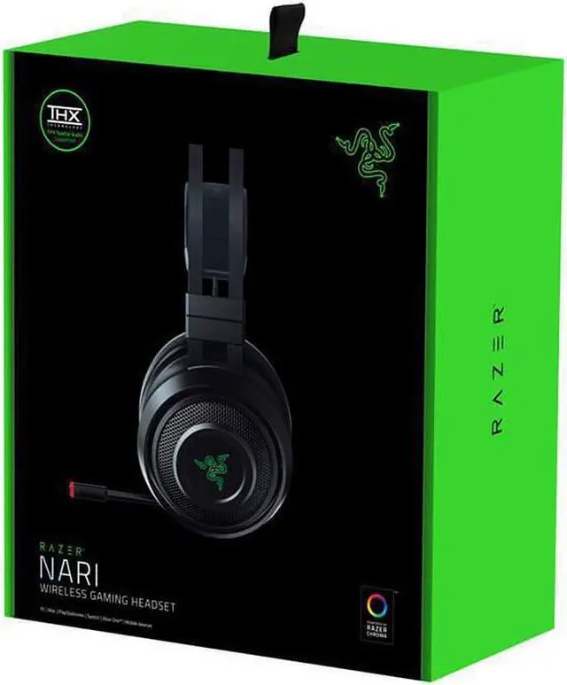 SUPREME WIRELESS IMMERSION When it comes to gaming immersion, sound plays a critical role. It engages your sense of hearing to determine the atmosphere and mood, creating a lifelike experience that lets you truly embody your game character. Standing by this philosophy, we've built a headset with THX Spatial Audio to bring you 360° positional sound, giving you greater spatial awareness. We've also added ergonomic design features to make this one of the most comfortable daily drivers for gaming. This is the Razer Nari. COMPLEMENTED BY COMFORT The Razer Nari is designed so that its immersive technology is complemented by comfortable features, letting you escape into game worlds for hours without strain. Cooling Gel-Infused Cushions Reduces heat build-up during intense gaming sessions Auto-Adjusting Headband Maximum adjustability to fit seamlessly onto any head size Swiveling Earcups Adapting to the shape and position of your ears OTHER FEATURES Game/Chat Balance Fine-tune between game and chat volume for the perfect mix that lets you enjoy immersive sound without interrupting team communication. 2.4GHz Wireless Audio Get lag-free, high-fidelity gaming audio with a wireless range of up to 12 meters smoothly without disconnection. Wired Mode Get seamless cross-platform compatibility via a 3.5 mm audio jack in wired mode. Enjoy high quality stereo sound whether you're playing on PC, consoles or mobile. THX SPATIAL AUDIO THX Spatial Audio goes beyond traditional surround sound by simulating sound in a 360° sphere around you. With the Nari Ultimate, you can now react to any in-game movement, even if it's coming from above or beneath you, giving you heightened senses during your game. Unleash your predatory instincts with sound as a weapon. RAZER NARI ULTIMATE VS RAZER NARI VS RAZER NARI ESSENTIAL Feel the impact of every battle via HyperSense with the Razer Nari Ultimate, or simply enjoy incredible gaming sessions with the comfortable ergonomics of the Razer Nari. If you're looking for a gaming headset that's just as comfortable and can run wirelessly for long hours, then we've also got the Razer Nari Essential. WE'VE GOT YOU COVERED Get 1 year of warranty and access reliable tech support here. Purchase directly from RazerStore and get 14 days risk-free returns. Product Type: Headset Sound Mode: Stereo Product Type: Headset Impedance: 32 Ohm Manufacturer Part Number: RZ04-02680100-R3U1 Microphone Technology: Uni-directional Packaged Quantity: 1 Sound Mode: Stereo Sound Pressure Level: 107 dB Limited Warranty: 1 Year Weight (Approximate): 15.20 oz Color: Black Connectivity Technology: Wireless Form Factor: Circumaural Wireless Technology: RF Color: Black Connectivity Technology: Wireless Form Factor: Circumaural Manufacturer: Razer USA Ltd Product Name: Nari Headset Product Line: Nari Wireless Technology: RF Brand Name: Razer Brand Name: Razer Height: 7.3 Width: 8.6 Depth: 3.9 Earpiece Design: Over-the-head Earpiece Type: Binaural Driver Size: 1.97 Minimum Frequency Response: 12 Hz Maximum Frequency Response: 28 kHz Microphone Design: Boom Product Family: Nari Wireless Operating Distance: 39.4 ft Noise Canceling: Yes Earpiece Design: Over-the-head Earpiece Type: Binaural Driver Size: 1.97 Minimum Frequency Response: 12 Hz Maximum Frequency Response: 28 kHz Microphone Design: Boom Wireless Operating Distance: 39.4 ft Noise Canceling: Yes