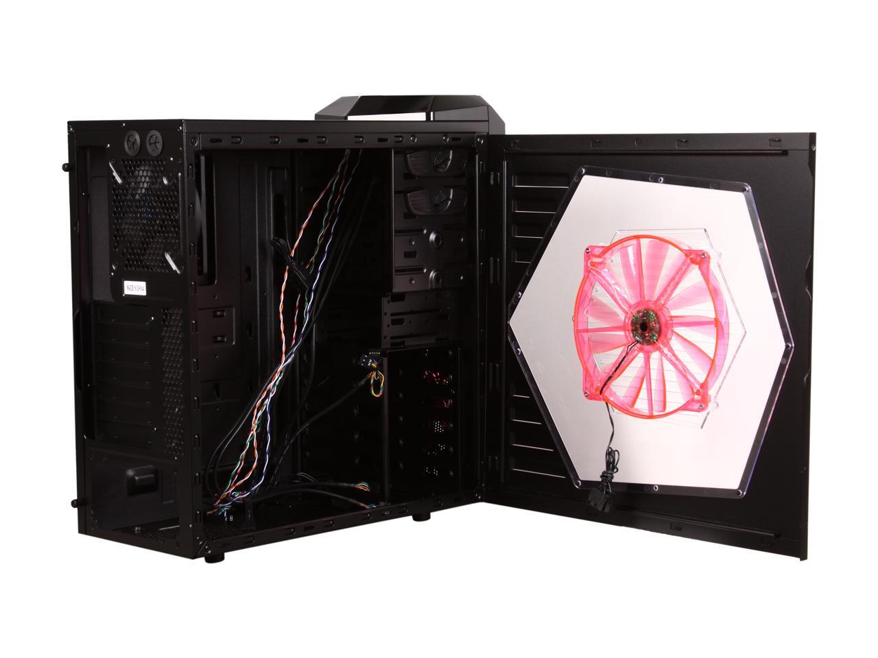 Efficient CoolingOne 120mm front red LED fan, one 120mm rear fan, two 120mm top fans and one 200mm side red LED fan produces tremendous air flow to cool your entire system.