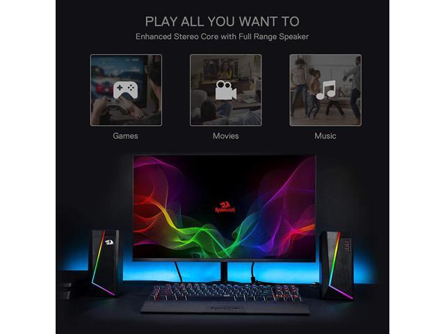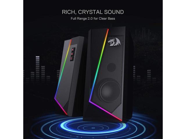 Redragon GS520 Anvil RGB Desktop Speakers, 2.0 Channel PC Computer Stereo Speaker with 6 Colorful LED Modes, Enhanced Bass and Easy-Access Volume Control, USB Powered w/ 3.5mm Cable