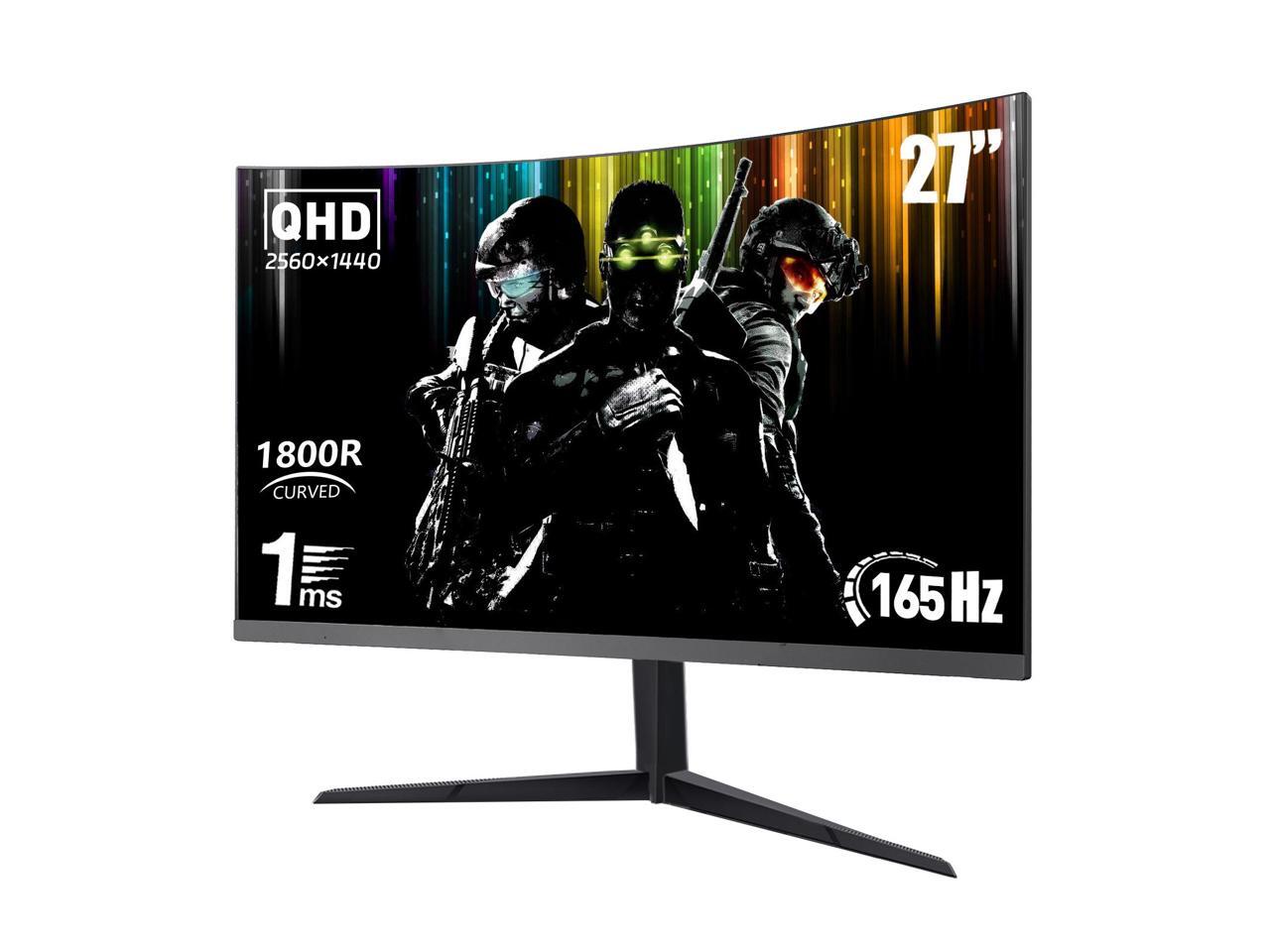 27 Inch QHD 2K(2560 x 1440) Curved Gaming Monitor 165Hz 1ms Fast Computer Monitor, DP/HDMI,VESA Mount, 120% sRGB HDR Eye Care Metal Stand
