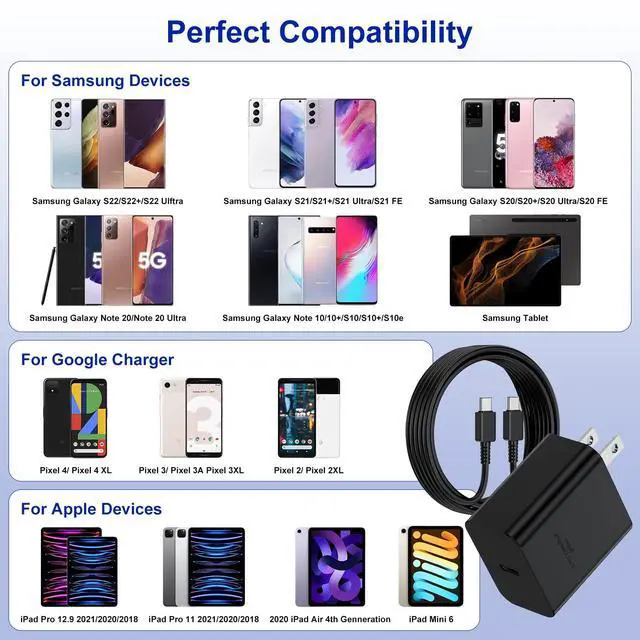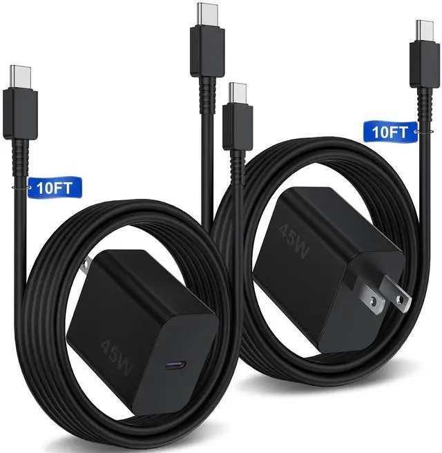 2 Pack 45W Samsung Super Fast Charger with C-Charge Cable Cord