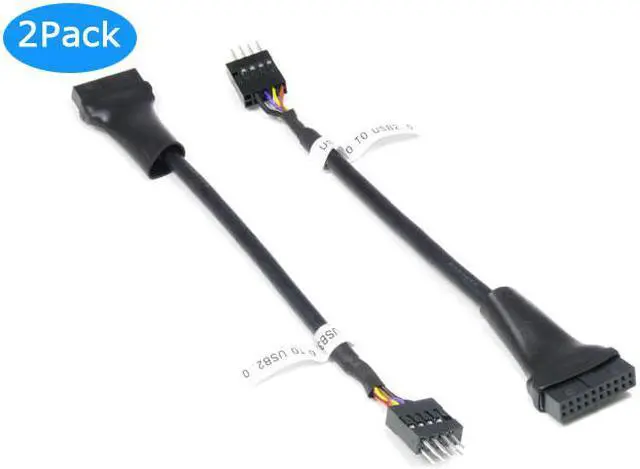 2 x USB 2.0 9Pin male to Motherboard USB 3.0 20pin Housing Female cable 10cm.