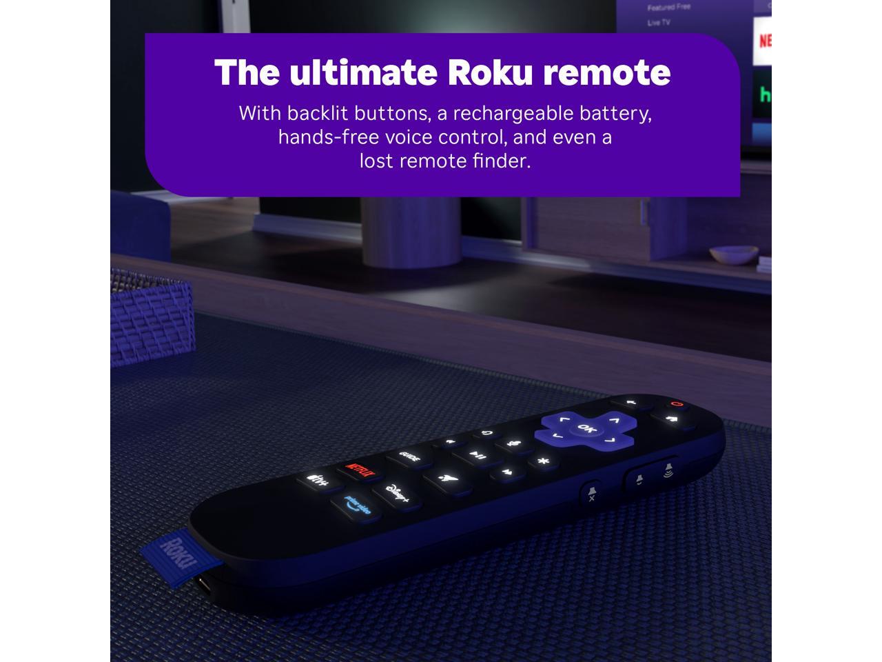 Roku Voice Remote Pro with backlit buttons and a rechargeable battery