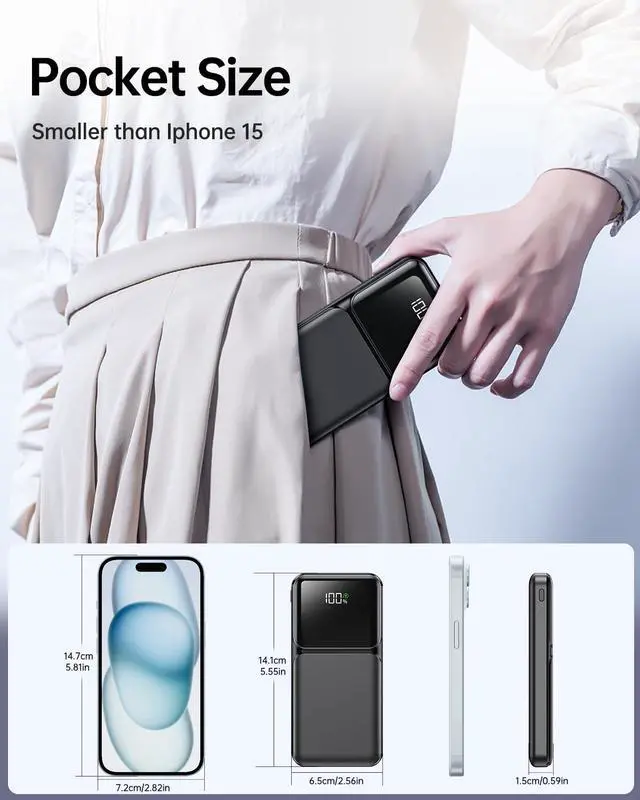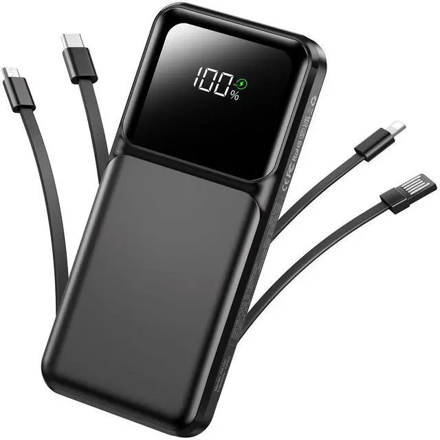Travel Essentials Portable Charger with Built in Cables: Slim USB C 20000mAh power bank has 4 built in cables (iOS, Type-C, USB, Micro) and 3 Charging port , Widely compatible with almost all types smart devices such as for iPhone 17/17 Pro/17Pro max/16/15/15 Plus/15 Pro/15 Pro Max, S23,S22,S21,S20, Google, Pixel, Android, iPad, Tablet and more. We use high quality materials to ensure the durability, tear resistance, and bend resistance of this power bank with built in cables, please gently pull the cable to avoid charging port damage. (Airline-approved)