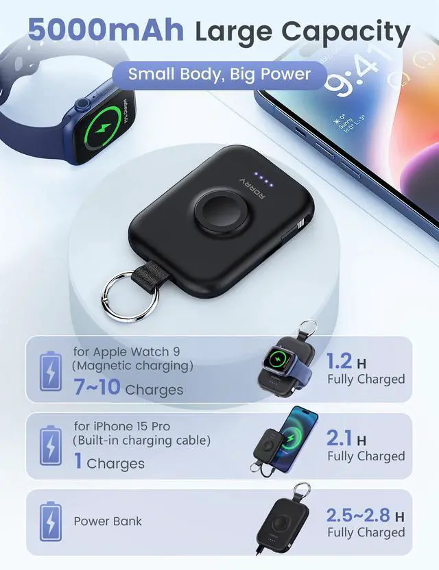 | Bulit-in Cables, 3-in-1 | Bulit-in Cables, 3-in-1 | Bulit-in Cables, 3-in-1,Screen | Keychain Charger for iWatch | Bulit-in Cables, AC Charger | Ultra Slim, Magnetic | Foldable Portable charger |