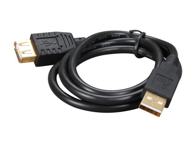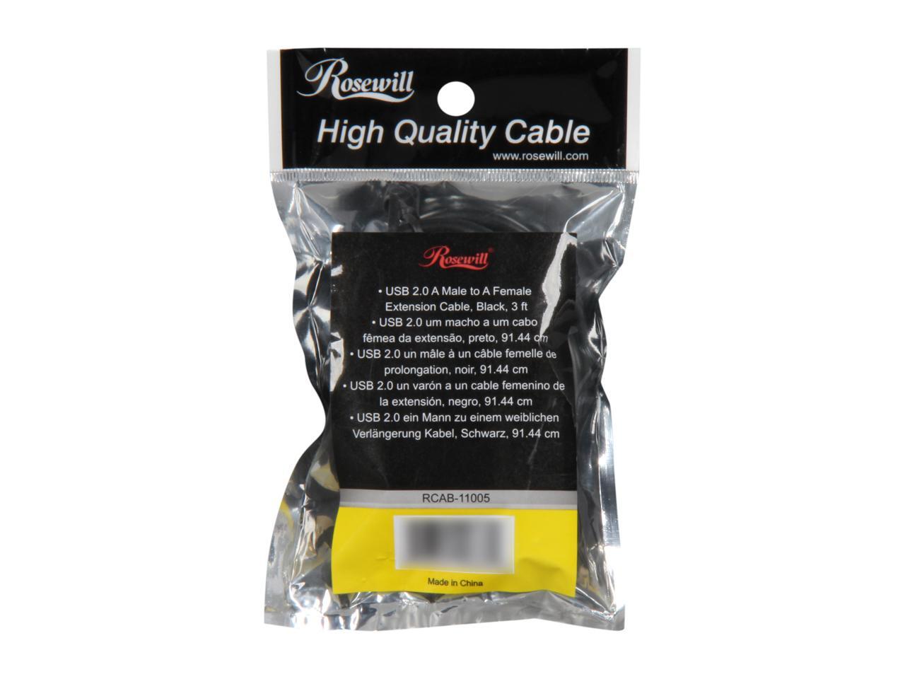 Rosewill RCAB-11005 3 ft. Black USB2.0 A Male to A Female Extension Cable, Gold Plated, Black