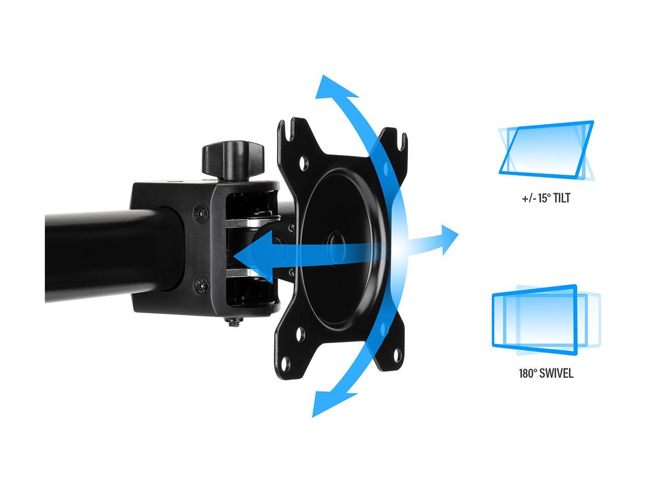 - +/-15 degree tilt; 180 degree swivel; 360 degree rotate