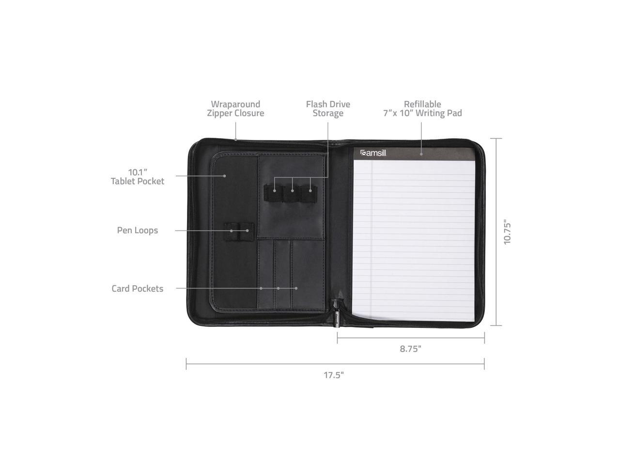 Samsill Junior Professional Padfolio with Secure Zippered Closure 10.1 Inch Tablet Sleeve and 7 by 10 Inch Notepad Black Junior 70821