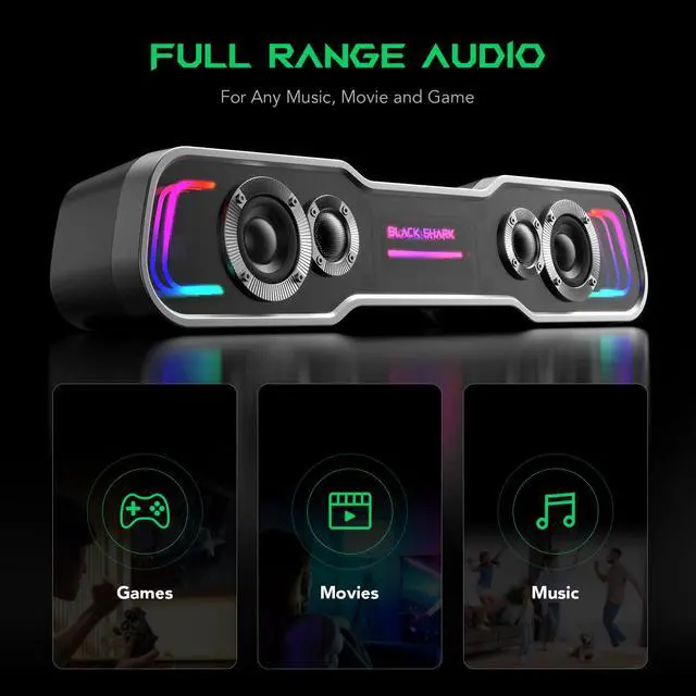 Deep Bass & Stereo SoundBlack Shark BS-SP1 computer speakers using double layer neodymium magnets speaker units and upgraded 2x5W technology. It can deliver deep powerful bass and crystal clear stereo sound effects. Immersive cinema effect for games, movies, and music.