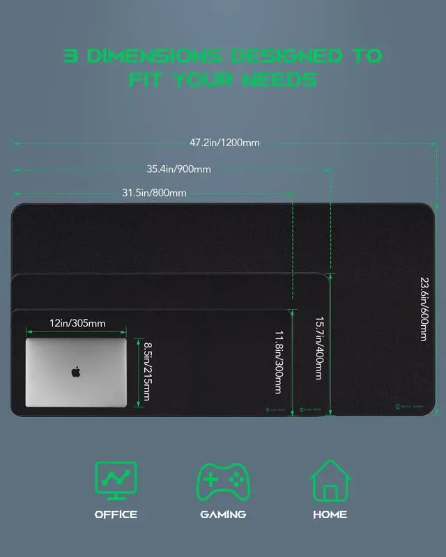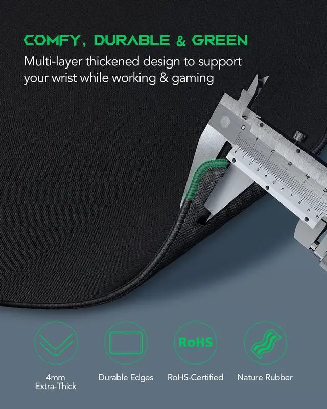 Simple & DurableThe classic all-black design is suitable for gaming and office. Well-stitched and finished edges prevent mouse pad large wear or tear, ensuring greater durability