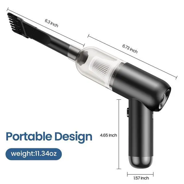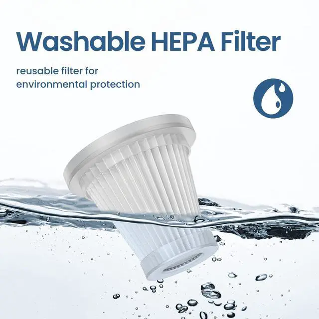 The handheld vacuum, with a HEPA filter, purifies deeply. It releases fresh air while running. The HEPA filter is easy to disassemble and clean, and can be cleaned with water.