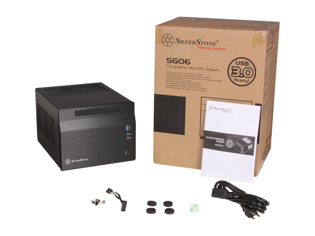 Other notable features shared with the SG05 include the ability to accept 10-inch long graphics cards, room for thicker 2.5-inch hard drives such as Western Digital's VelociRaptor, full-height for retail boxed CPU coolers, and an 80 PLUS certified SFX 300W power supply tuned by SilverStone for improved quietness and performance (300W continuous rated at 122°F (50°C)). For building a fast PC in the smallest possible form factor and with great styling, there is nothing better than the SG06.