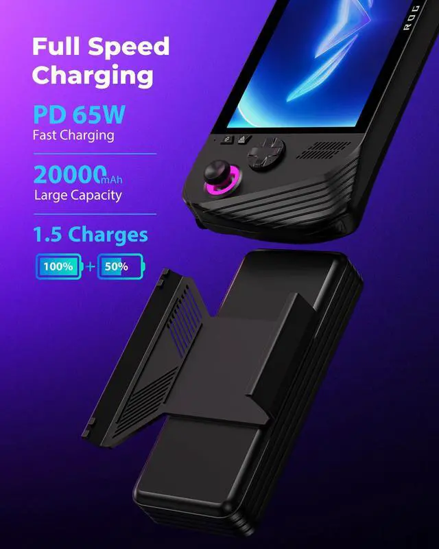 SIWIQU first 65W 20000 mAh Detechable Magnetic Attached Power Bank Specifically Designed for ROG Ally X, Detachable Magnetic Back Mount. Support 30W Turbo Operating Mode for rog ally x!