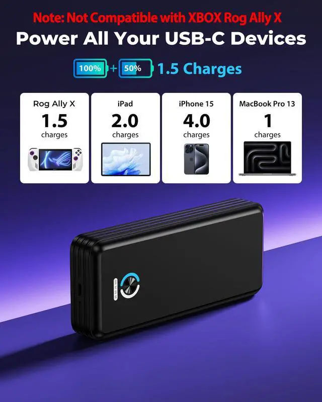 Compatible with Rog Ally X, MacBook, iPad, iPhone power all your USB-C devices