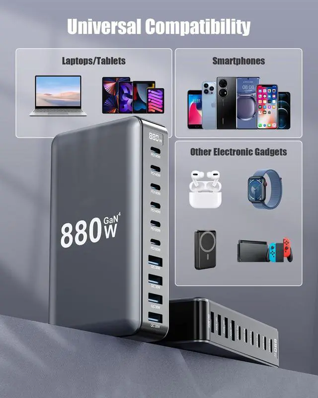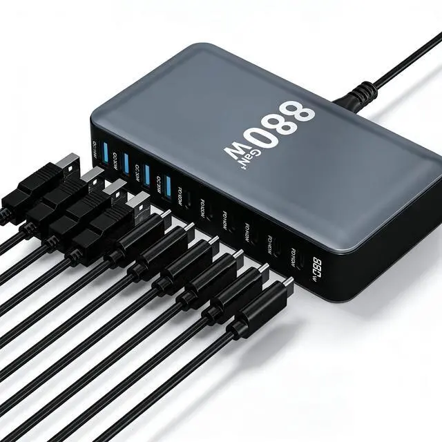 NEW Upgrade USB C Charger Block, 880W GaN 10 Port PD3.1 USB C and QC4.0 USB A Charging Station Adapter for Your Travel