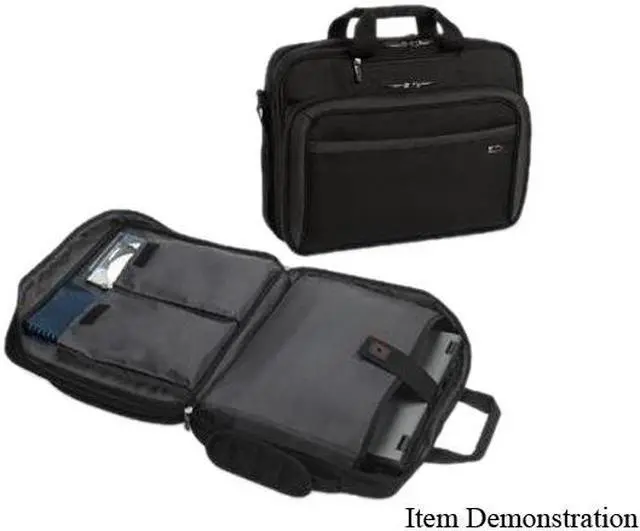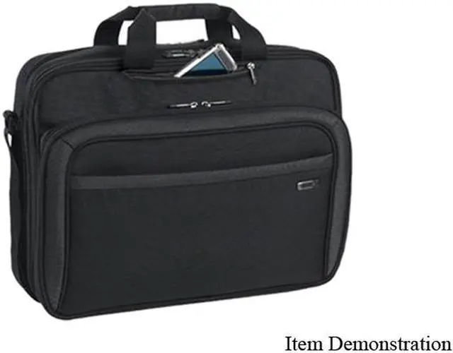 Laptop portfolio features a clamshell design that separates your laptop from accessories for clear x-ray scanning while passing through airport security. Laptop compartment holds most 17" laptops. Zip-down organizer provides dedicated sections for glasses, camera and cell phone as well as business card slots, pen loops and a key fob. Front compartment features a file section to keep documents safe and organized. Zippered pockets on front of case offer an additional compartment for items you need while on the go. Easily carry portfolio with adjustable shoulder strap and carry handles.