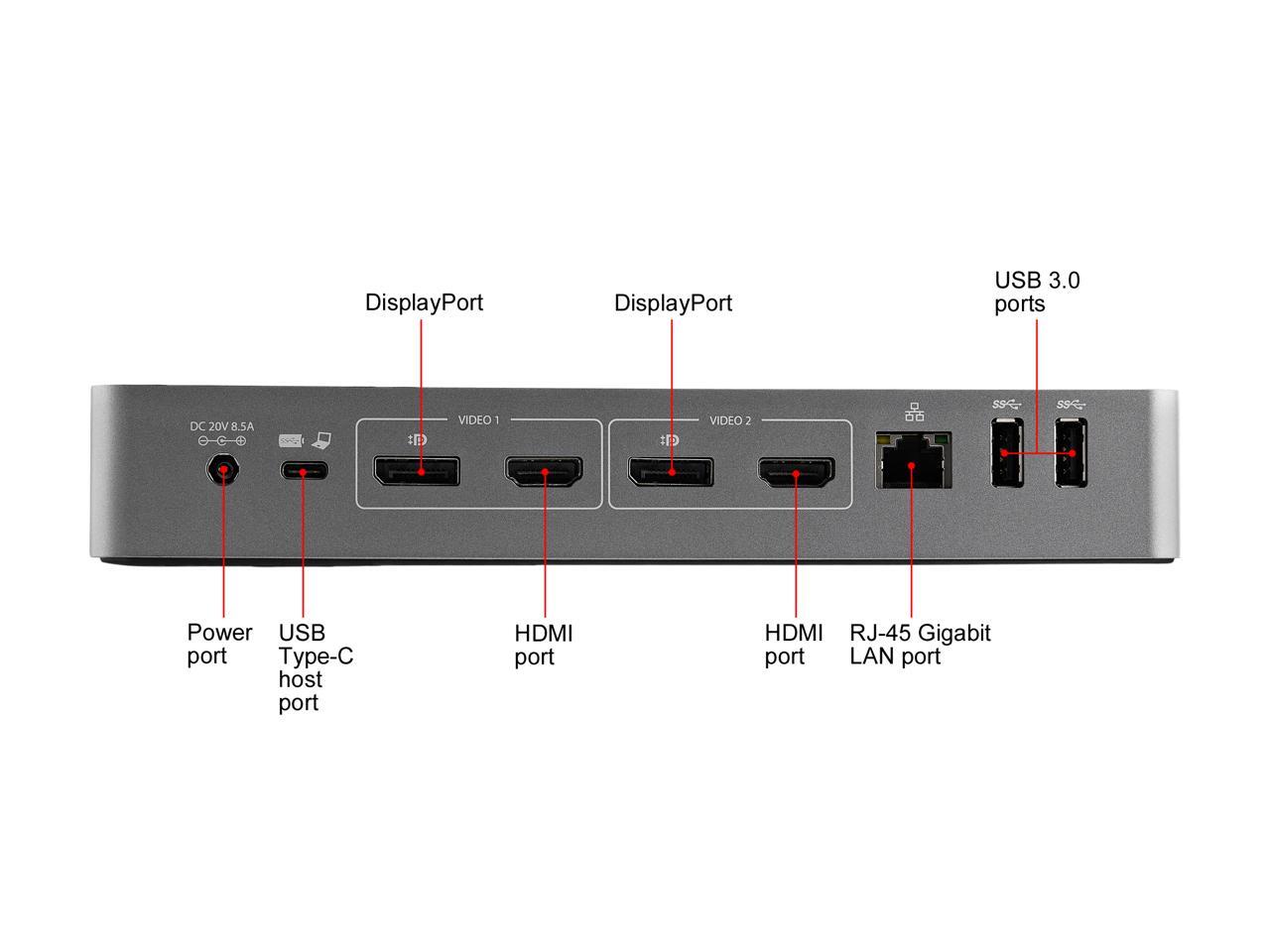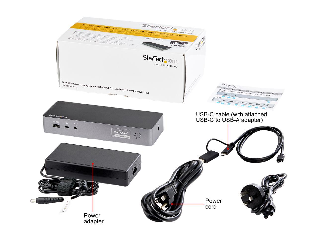 StarTech.com Black & Space Gray DK30C2DPEP Dual 4K Universal Laptop Docking Station - USB-C / USB 3.0 - 100W PD