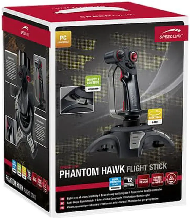 Features - Ultimate gaming experience - PC compatible - Ergonomically designed flight stick - Hand rest for right-handed use - Coolie Hat for an eight-way all-round visibility - Perfect grip on all surfaces thanks to especially strong suction discs - Progressive throttle controller - Twelve programmable digital fire buttons - Force vibration - Rotatable, Z-Axis - 4-way digital D-pad - Cable length: 2m - Dimensions: 185 ÃÂ 240 x 185 mm (W ÃÂ H x D)