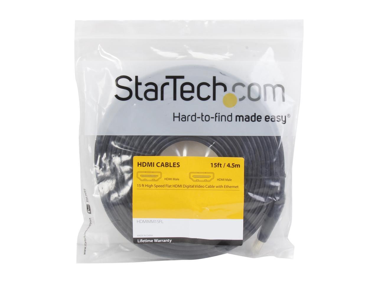 StarTech.com HDMIMM15FL 15 ft. Black Flat High Speed HDMI Cable with Ethernet Male to Male