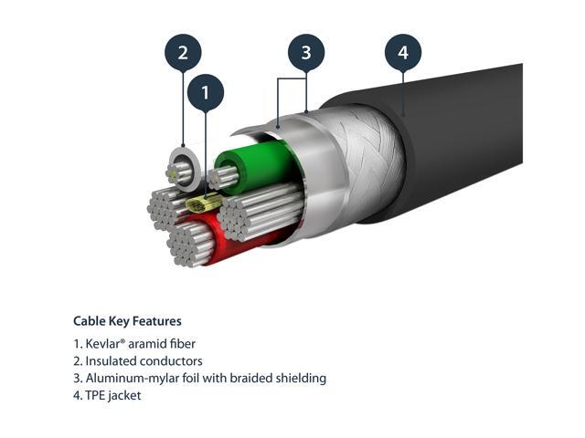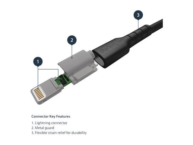 - Durable 1m USB to lighting cable w/Kevlar aramid fiber for high tensile (pull) strength upgraded alternative to USBLT1MBS