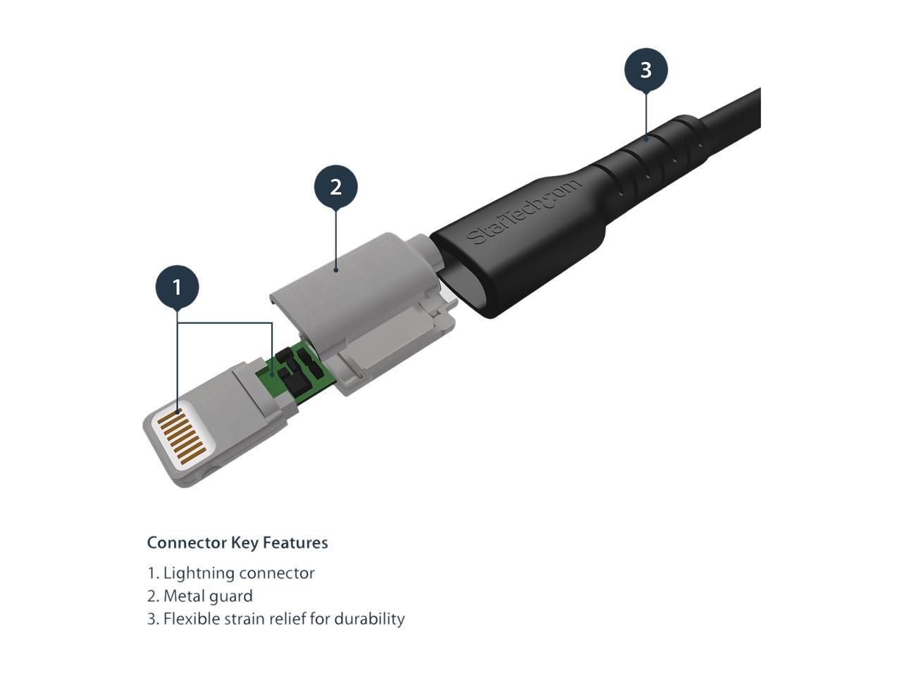 StarTech.com 1m USB A to Lightning Cable - Durable Black USB Type A to Lightning Connector Charge and Sync Charger Cord - Rugged w/Aramid Fiber - Apple MFI Certified - iPad Air iPhone 11 (RUSBLTMM1MB)