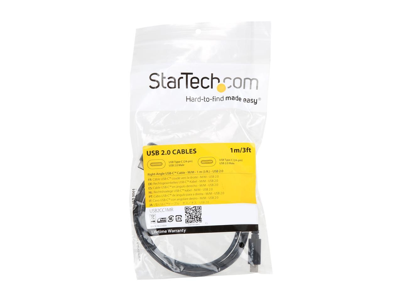 StarTech USB2CC1MR Right Angle USB-C Cable - 1m / 3 ft. - Reversible - M/M - USB Type C Cable - USB-C Charge Cable - USB C to USB C Cable