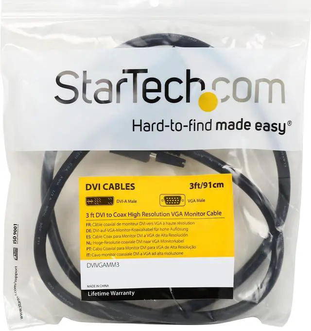 StarTech.com DVIVGAMM3 Black Male to Male DVI to VGA Display Monitor Cable