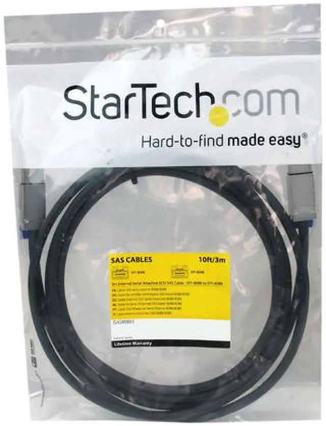 MAIN OVERVIEW FEATURES: Cable Type: SASCable Length: 9.84 ftConnector on First End: 1 x 26-pin SFF-8088 Mini-SASConnector on Second End: 1 x 26-pin SFF-8088 Mini-SASShielding: YesDevice Supported: Network Device,Hard Drive,Storage DriveAmerican Wire Gauge: 28 AWGColor: BlackWeight (Approximate): 10.90 ozEnvironmentally Friendly: YesEnvironmental Certification: RoHS,REACH,WEEETAA Compliant: YesLimited Warranty: Lifetime
