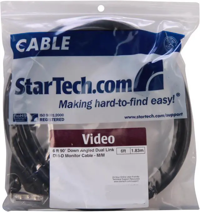 StarTech.com DVIDDMMBA6 Black Male to Male 90° Down Angled Dual Link DVI-D Monitor Cable