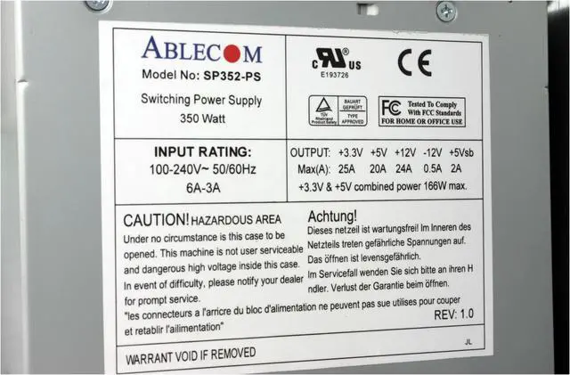 | Power Supply | Thermal control 350W AC power supply with low noise redundant cooling fan (with PFC) |